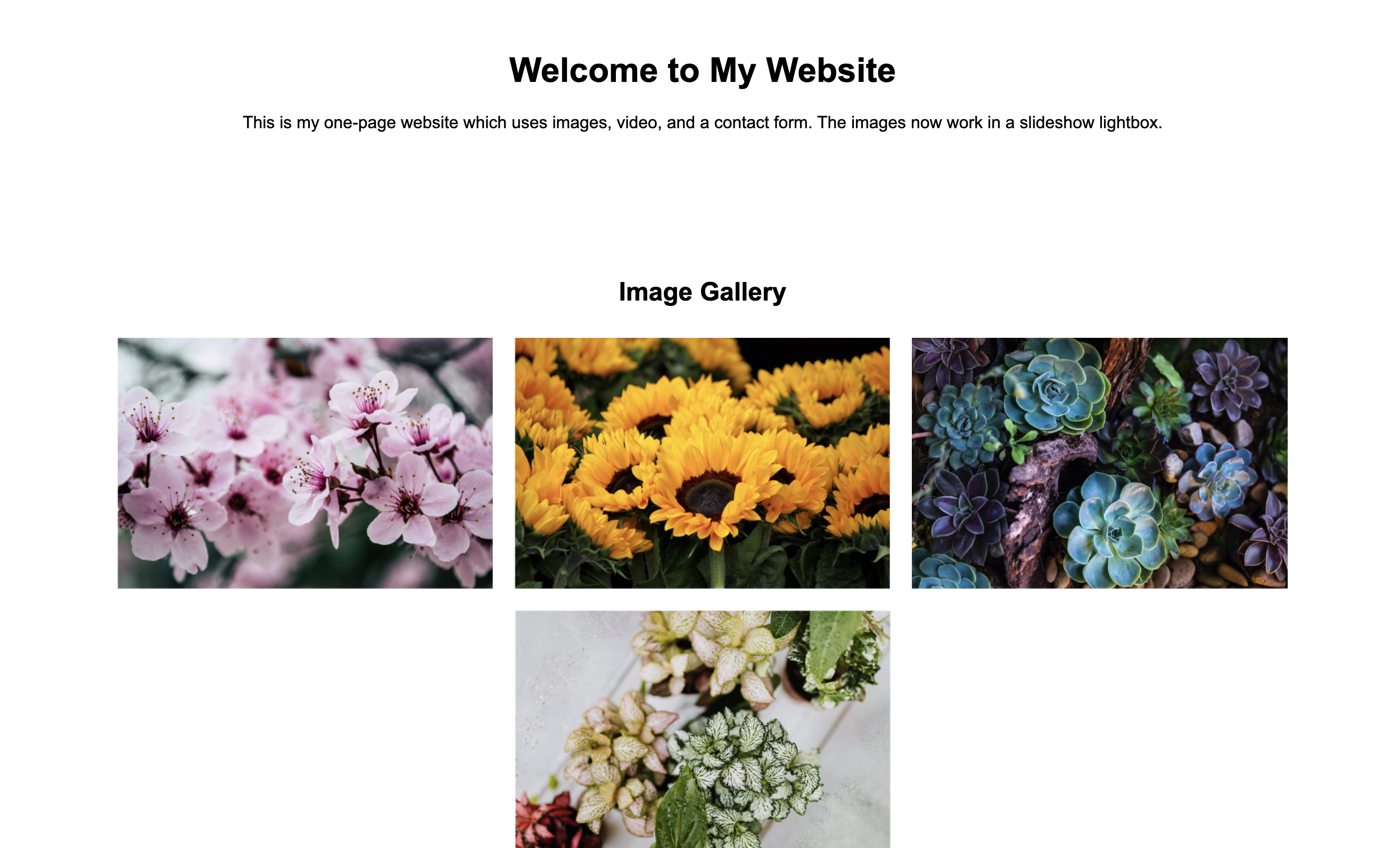 This assignment introduced JavaScript to add interactivity to the website. I implemented features such as button actions, smooth scrolling, and dynamic content updates to improve user experience..